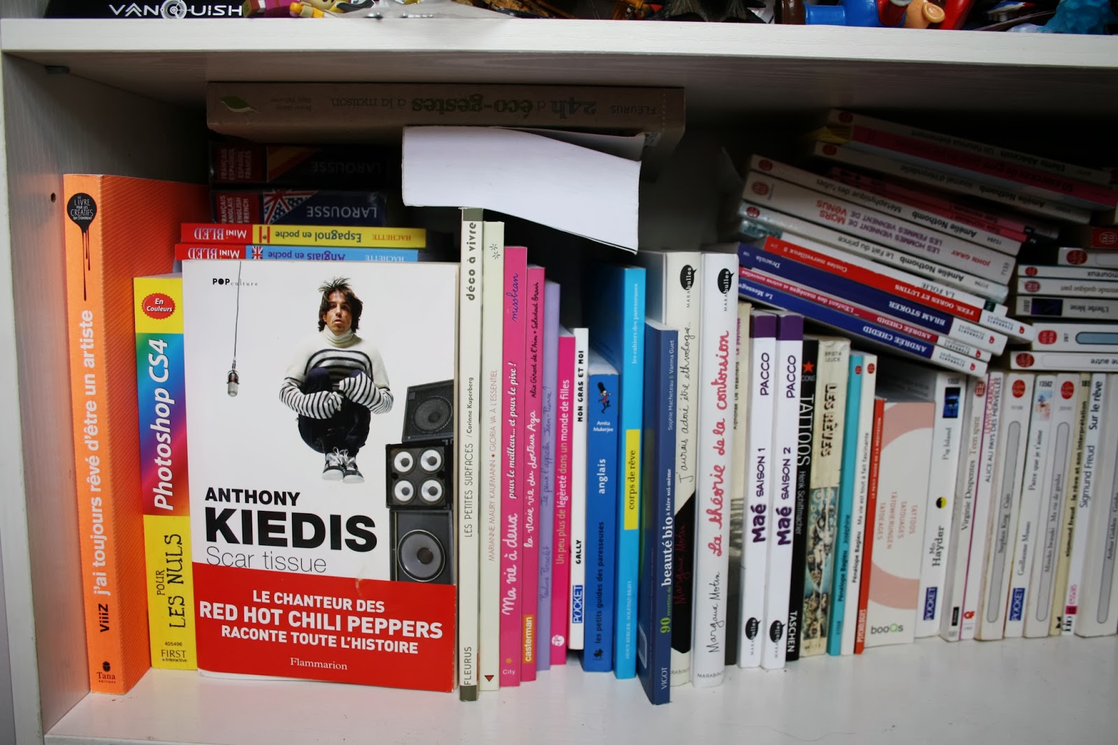 Cette pièce est restée longtemps inutilisée mais je l'avais quelque peu aménagé il y a quelques mois pour y faire un coin lecture, avec ma bibliothèque, un petit canapé et une déco assez girly. J'y ai donc ajouté mon bureau et tout mon matériel ! Cette pièce est un véritable cocon pour moi, autant par sa forme (petite et mansardée) que par son contenu: tout ce qui compte réellement pour moi.