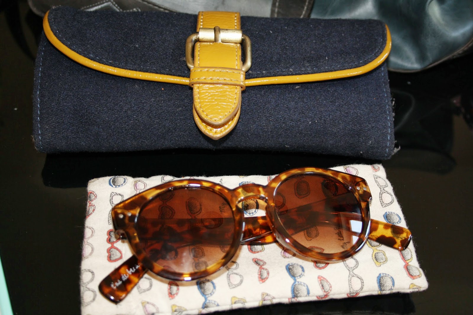 8- J'ai toujours une paire de lunettes de soleil sur moi, en plus de mes lunettes de vue. J'ai les yeux assez sensible et je ne peux pas conduire sans. En ce moment j'alterne entre les lunettes My Little Box et mes Wayfarer. Je prends toujours un étui fourreau comme celui ci, ça prend beaucoup moins de place qu'une boite à lunettes !