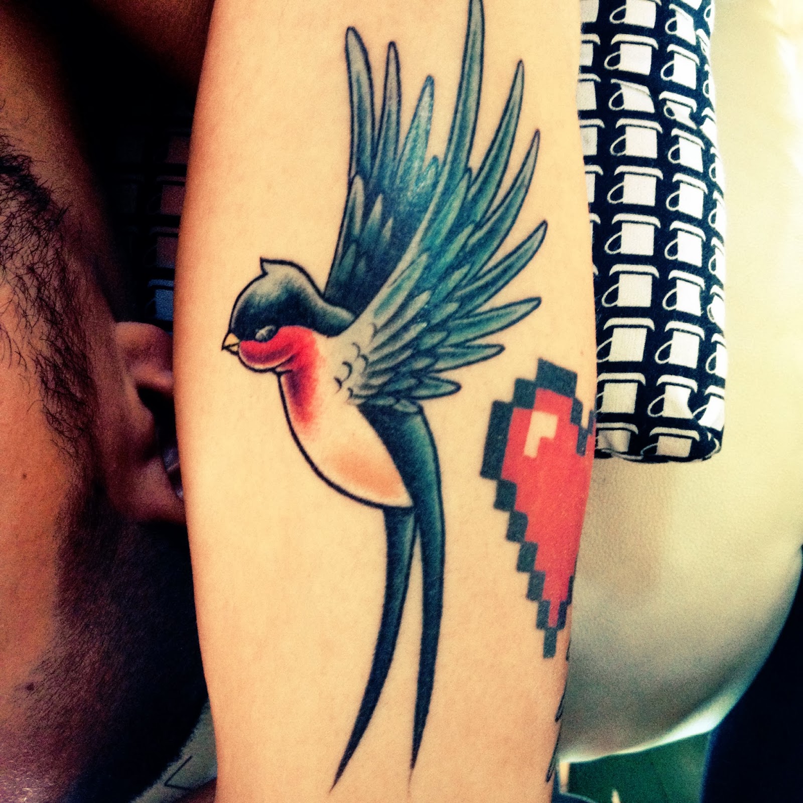 ♥ Il s'est fait à nouveau tatouer et je dois dire que je fonds... Déjà sur la qualité du travail réalisé (il y a une deuxième hirondelle de l'autre côté de son bras ! ) et parce qu'il est tellement beau avec ses tatouages ♥ Il s'est fait tatouer chez Octopus Tatouage pour celles qui sont de région parisienne, foncez ! Vous serez accueilli dans un shop hyper clean, par un couple de trentenaire super sympa ! Leur spécialité: des tattoos hyper colorés et un penchant vers le cartoon ! Mon prochain tatouage sera donc réalisé là bas, sans aucune hésitation ! Plus qu'à leur apporter mon projet. Ca sera mon premier gros tatouage et je peux vous dire que j'y vais les yeux fermés ! Un article prochainement sur nos tatouages !